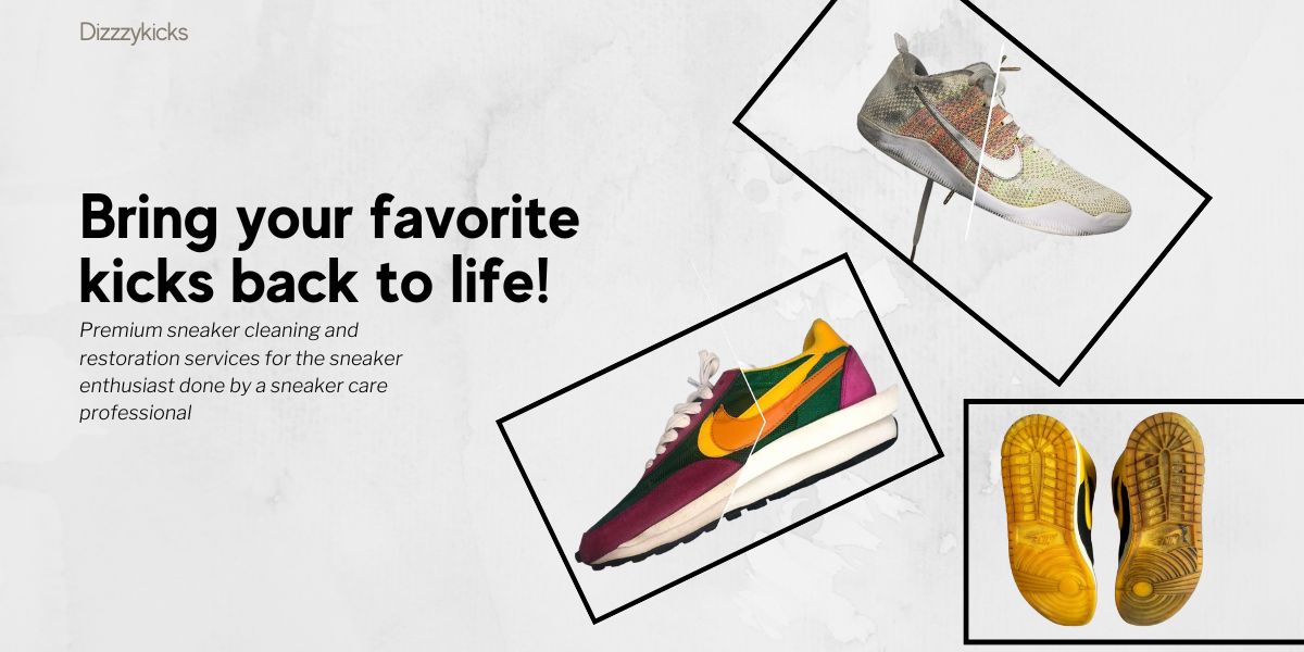 Take a look at your kicks, are they looking a little beat? Have they seen better days? If so, worry not, because Dizzzykicks has got you covered with sneaker cleaning and restoration services!